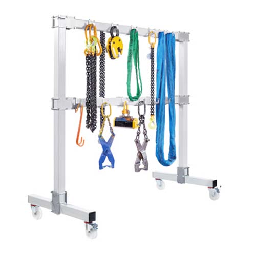Garderoba daje możliwość systematycznego porządku przy przechowywaniu takich elementów, jak łańcuchy, liny, pasy i inne zawiesia. Daje możliwość przejrzystego posortowania zawiesi dzięki dwunastu przesuwnym, ocynkowanym, podwójnym hakom z oczkiem do zawieszenia. Garderoba jest łatwa i szybka w montażu.