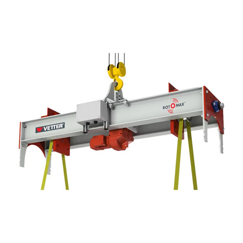 ROTOMAX Vario to kompaktowe urządzenie do obracania lekkich, do średnio ciężkich ładunków. Regulacja odległości pasów/łańcuchów może odbywać się ręcznie w stałych odległościach lub elektrycznie bezstopniowo.